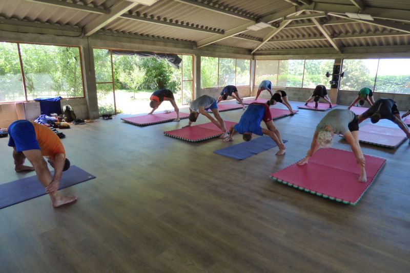 Un dôme végétalisé de saules salice du Jura, 150 m2 de gazon doux au sol pour les pieds nus, attenant à un Dojo couvert de 120 M2 sous un chêne bicentenaire. Quelques appareils sont à votre disposition (banc de musculation, sac de frappe, cordes, vélo d’appartement…).